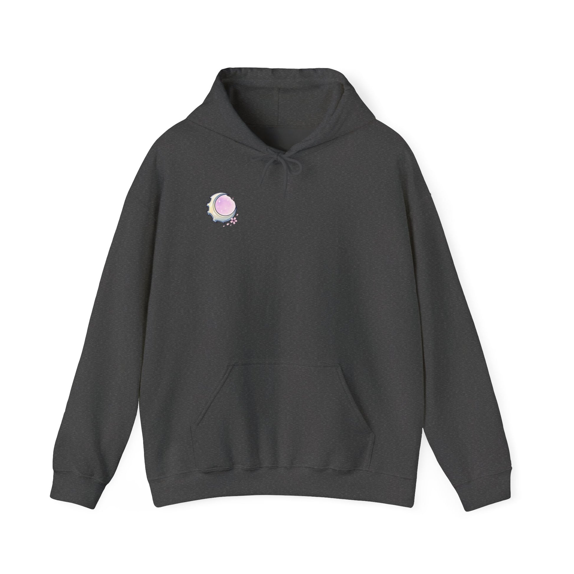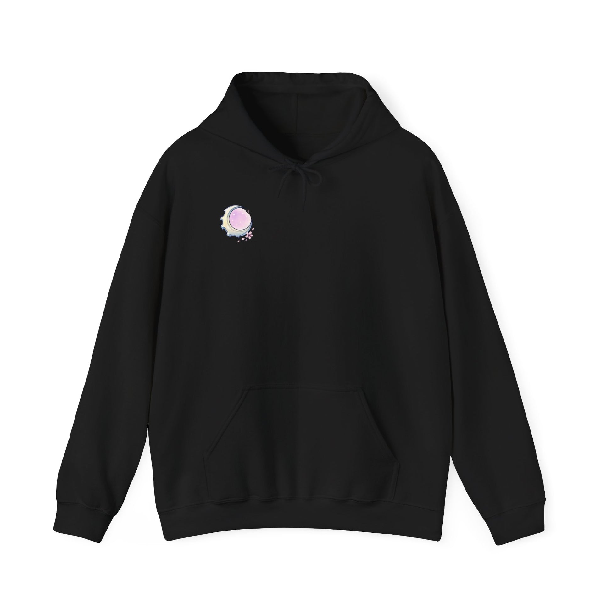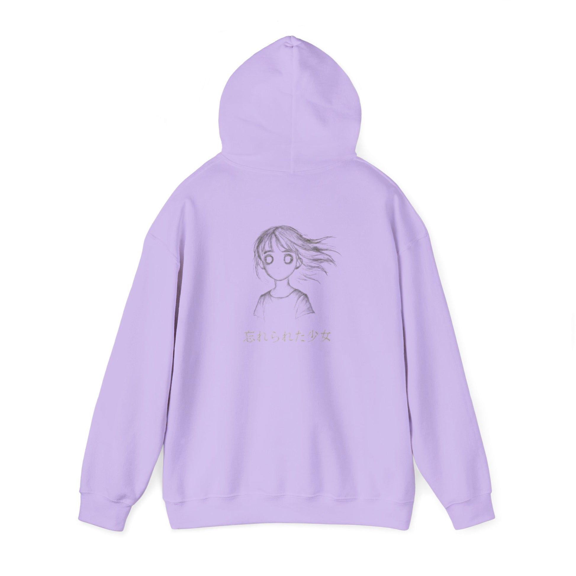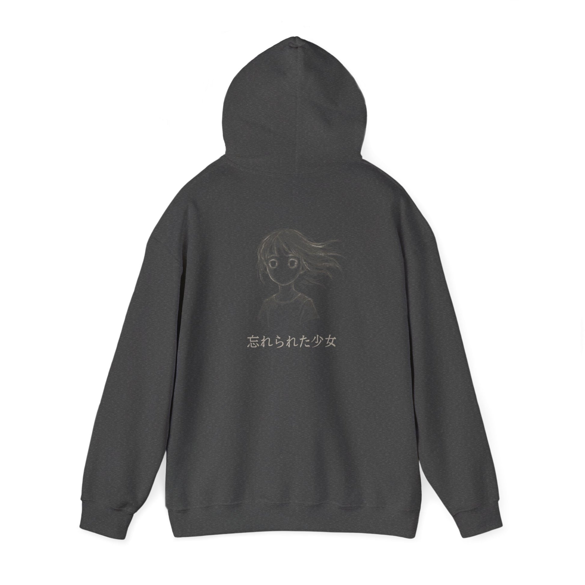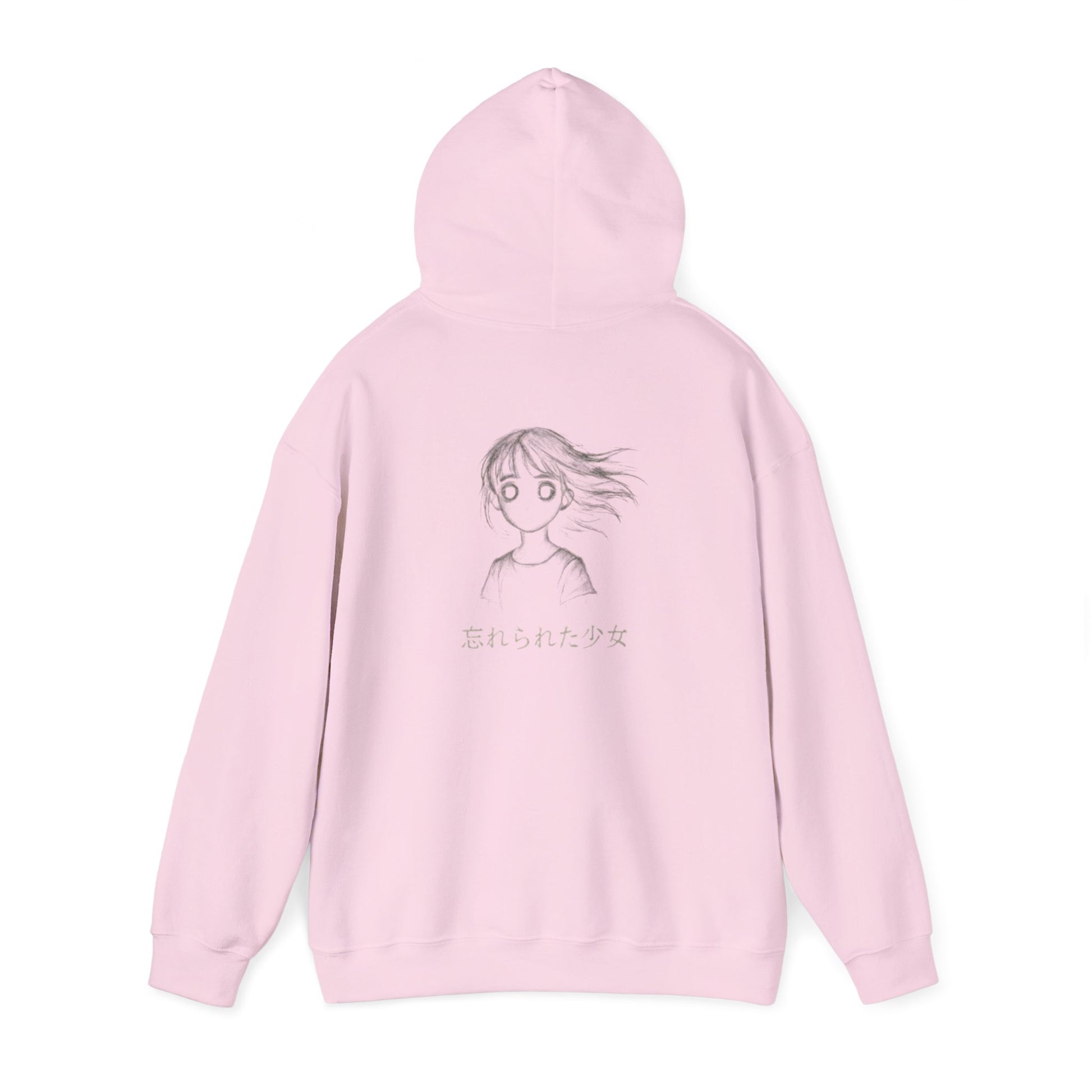 A soft, mid-weight hoodie that wears like a quiet companion on restless nights. The front shows a small, moonlit pearl emblem near the heart; the back opens into a hand-drawn, wind-tossed girl with wistful eyes and subtle Japanese text beneath — a whisper of memory and longing. Threads catch the light on the embroidered details while the printed artwork keeps its sketch-like, melancholy energy. Slip it on to feel sheltered from chill winds and noisy streets. It’s the kind of hoodie you reach for when you want to move slow, walk under empty lamps, or read until dawn with a warm cup in hand.