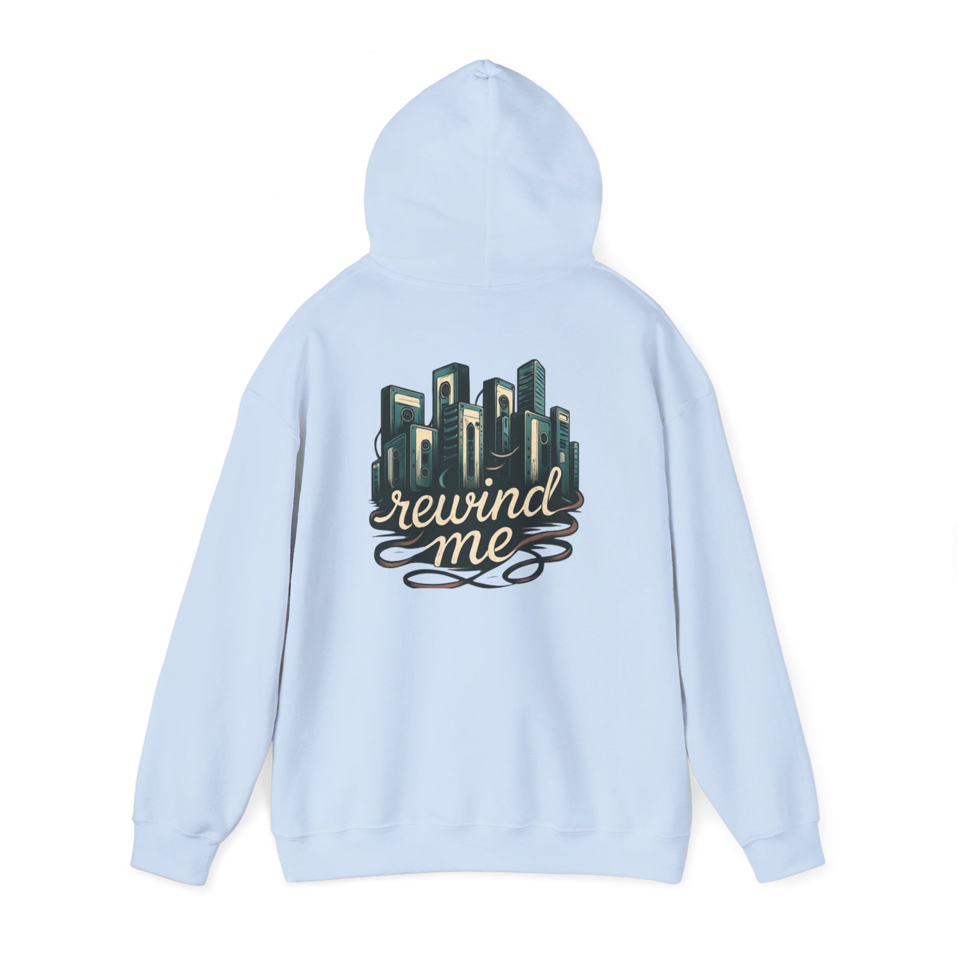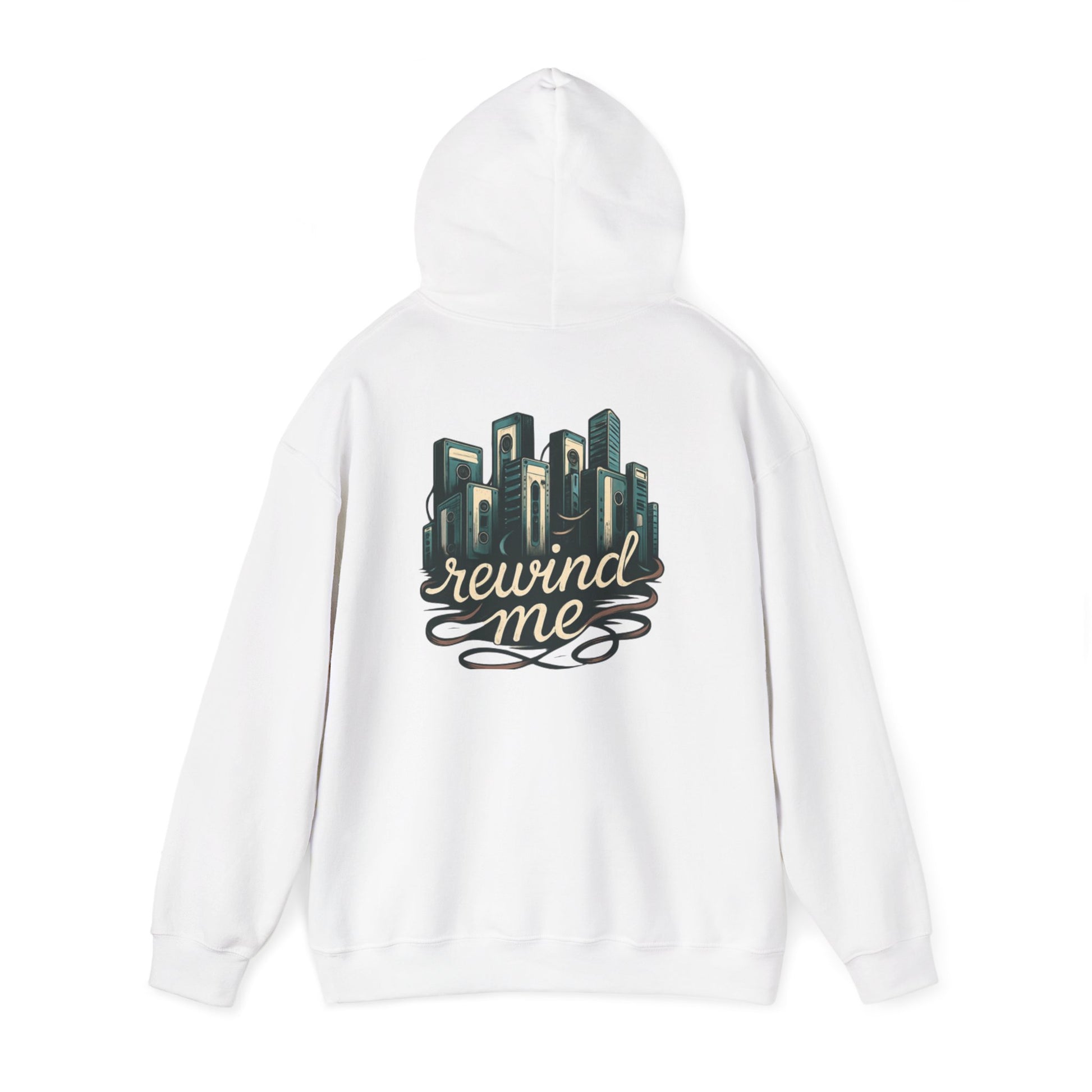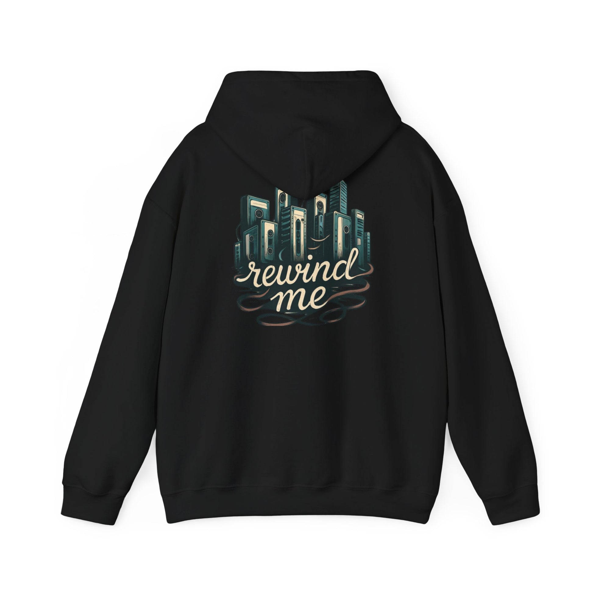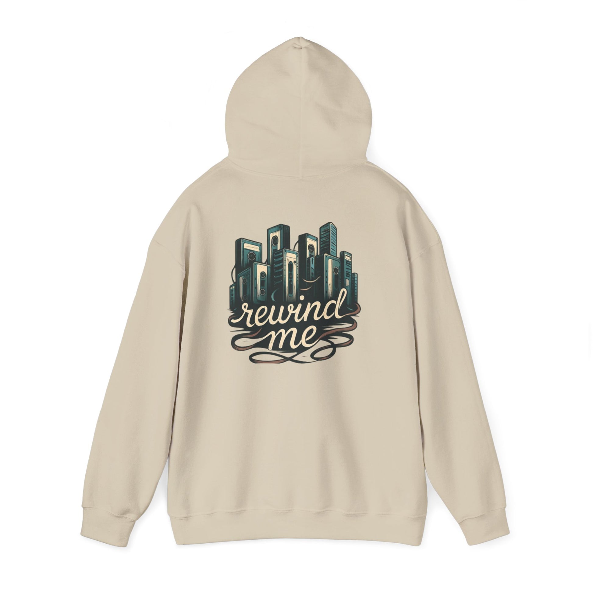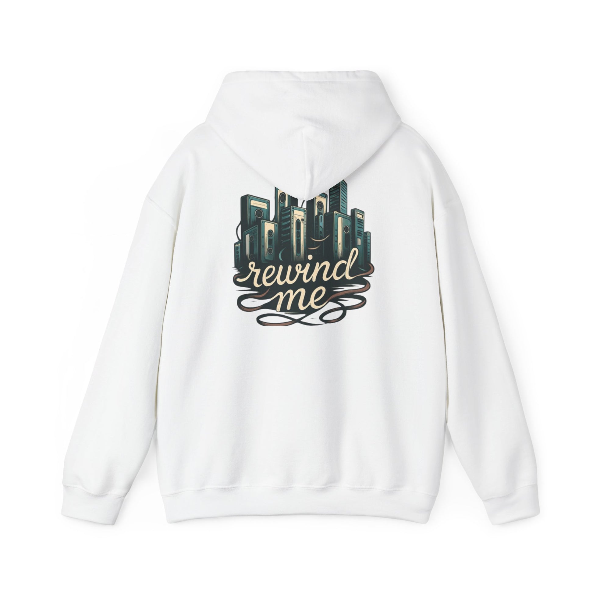 This cozy hoodie carries a quiet, nostalgic energy. Soft, medium-weight fabric cradles you while a hand-drawn cityscape and flowing “rewind me” script sit on the back like a memory you can wear. The roomy kangaroo pocket and double-lined hood make it easy to slip into comfort during evening walks, rooftop gatherings, late-night studio sessions, or commute days when you want something that feels familiar and a little wistful. Subtle details — color-matched drawcord, tear-away label, and the option for small chest embroidery — keep the look clean and wearable while the large back artwork makes a calm, artful statement.